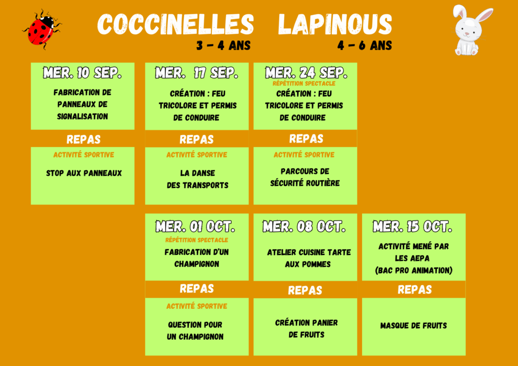 En fonction des annonces sanitaires, les dates des activités proposées à l’Accueil de Loisirs pourraient être modifiées ou éventuellement annulées.