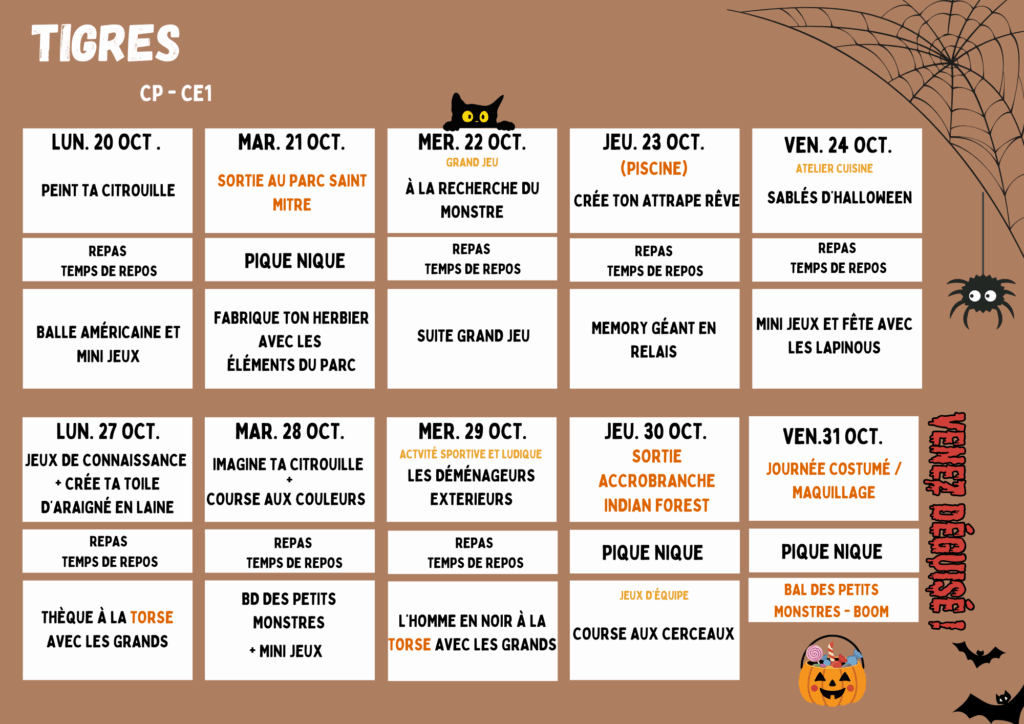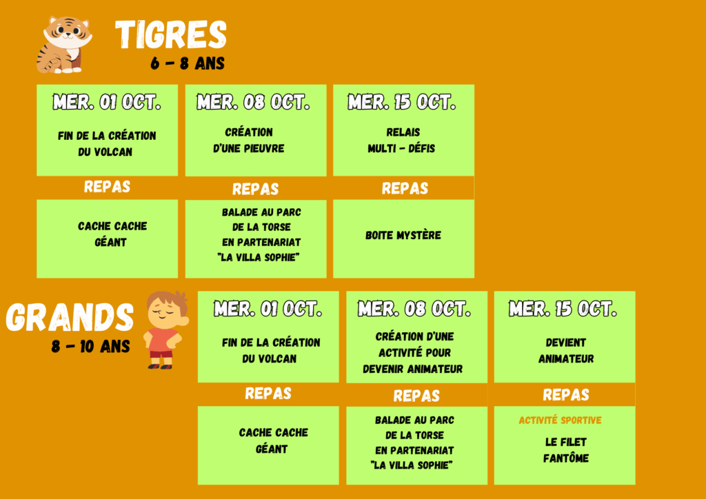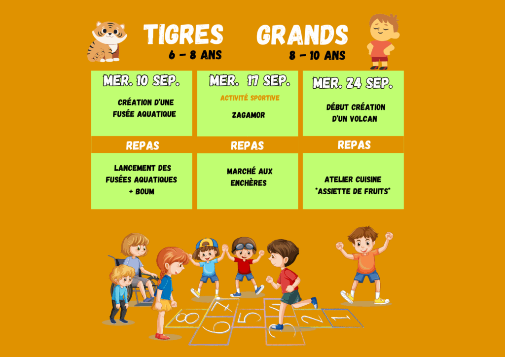 Coccinelles (3-4 ans) | Lapinous (4-6) | Tigres (6-8 ans) | Grands (8-11 ans) |Pré-ados (11-14 ans)